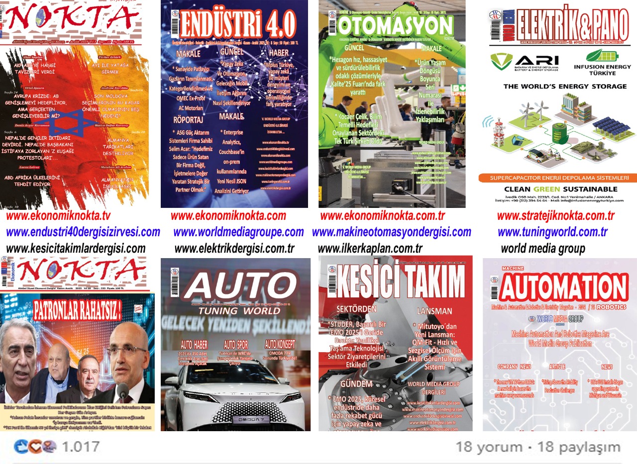 World Media Group tecrübe ve kalitesi ile sektöre yeni bir soluk taşımak amacıyla yeniden yapılandı. Yayıncılıkta çeyrek asrı aşkın süredir; sektörlerin nabzını tutmaya devam ediyor. Genel Ekonomik çizgide 25 yıllık deneyim Ekonomik / Stratejik Nokta Dergisi; Otomotiv sektörünün nabzını tutan 20 yıllık Auto Tuning World Dergisi ve 10 yıllık bir geçmişe sahip Makine Otomasyon Dergisi ile sektörlerin nabzını tutuyoruz. Ayrıca Spesifik alanlara hitap eden; Kesici Takımlar Tutucular Aşındırıclar, Elektrik & Pano, Endüstri 4.0 yayınlarımızla detay yayıncılığa imzamızı atıyoruz. Ayrıca Yurtdışında; Almanya, Hindistan, Rusya, Uzakdoğu fuarlarına dönük çıkardığımız ingilizce yayınımız Machine & Automation Magazine ile yurtdışınada da sesiniz oluyoruz.